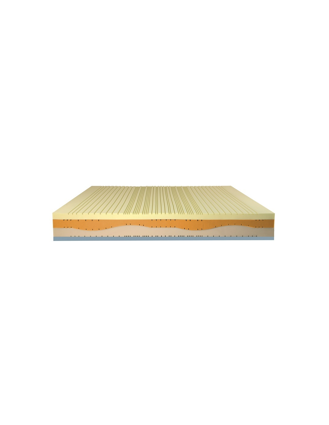 | Kern | - Oberschicht, 6 cm Viscoschaum, hohe Elastizität, Atmungsaktiv, Selbstformend, Festigkeit 2.3 kPa - Mittelschicht, 6 cm Kaltschaum, hohe Elastizität, Atmungsaktiv, Festigkeit 3.0 kPa - Unterschicht, 9 cm Kaltschaum, hohe Elastizität, Atmungsaktiv, Festigkeit 4.1 kPa - Untere Stützschicht, 3 cm Kaltschaum, hohe Elastizität, Atmungsaktiv, Festigkeit 3.4 kPa |