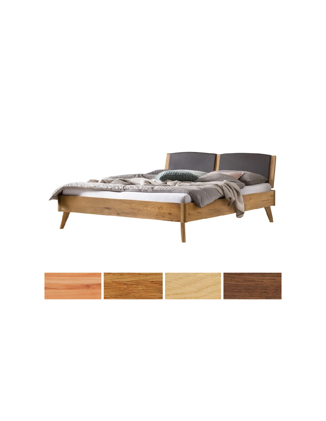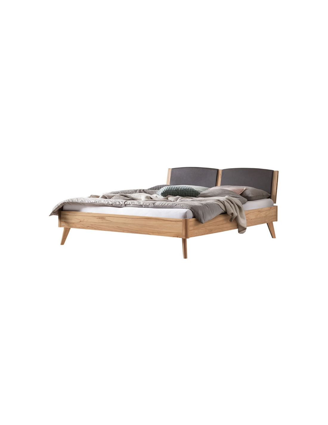 Die schmalen, filigranen Füsse in der Höhe von 20 cm verleihen dem Bett eine leichte und moderne Optik. Als Abschluss beeindruckt das Kopfteil, welches mit seiner Form optimal den Bettrahmen abrundet und dank der Kissen in dunklem Kunstleder smoke eine bequeme Atmosphäre schafft.