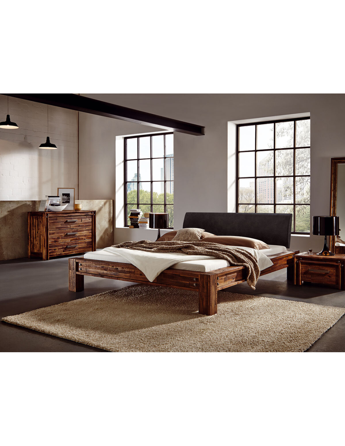 Dekorative Metallbeschläge und natürliche Unregelmässigkeiten. Das Bett San Felipe im unkonventionellen Fabrikhallen-Stil taucht jedes Schlafzimmer in ein aussergewöhnlich kosmopolitisches, urbanes Flair.