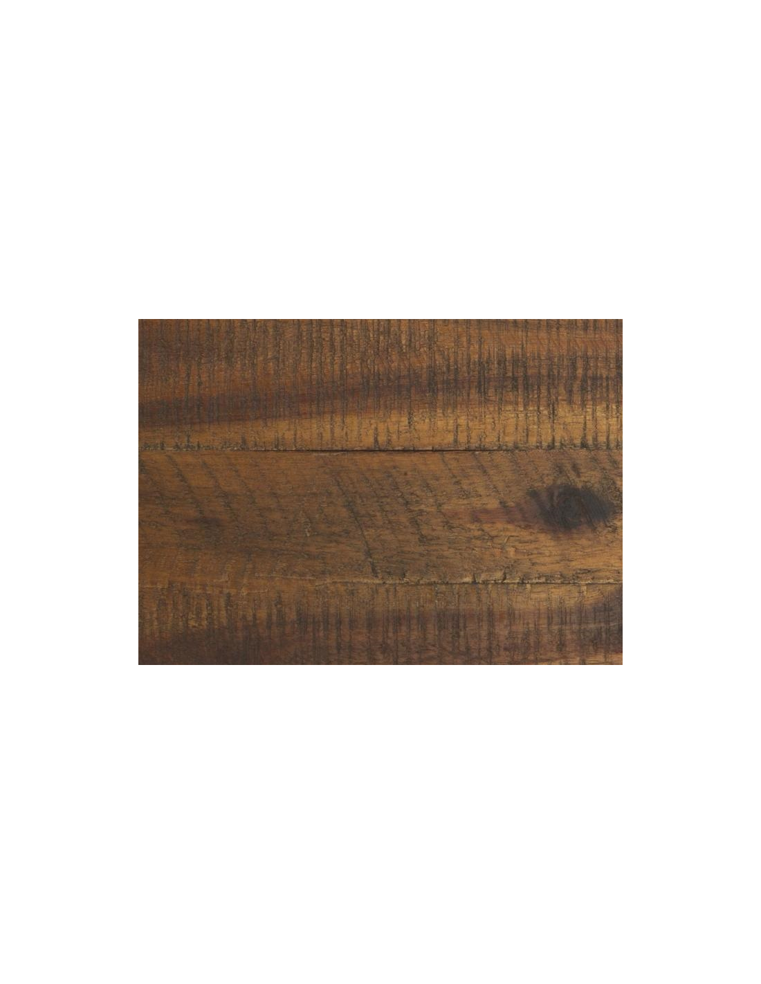 Alle Holzteile werden aus massiver Akazie gefertigt, deren Robustheit die industrielle Anmutung der Möbelstücke perfekt komplementiert.