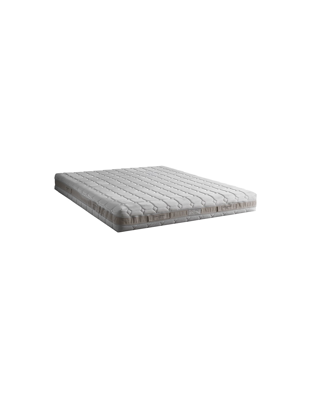 Le noyau interne du matelas Cashmere Comfort est composé de mousse viscoélastique et de mousse froide. Grâce à l'extraordinaire effet reconductible à la douceur exclusive du cachemire, la housse du matelas offre une souplesse qui accompagne le repos d'une sensation de douceur. Le rembourrage de la housse du côté inférieure est composé en 100% de fibres isolantes anti-allergiques et du côté supérieure est en mousse viscoélastique, un matériau qui a une une capacité extraordinaire de s'adapter précisément à la forme du corps.