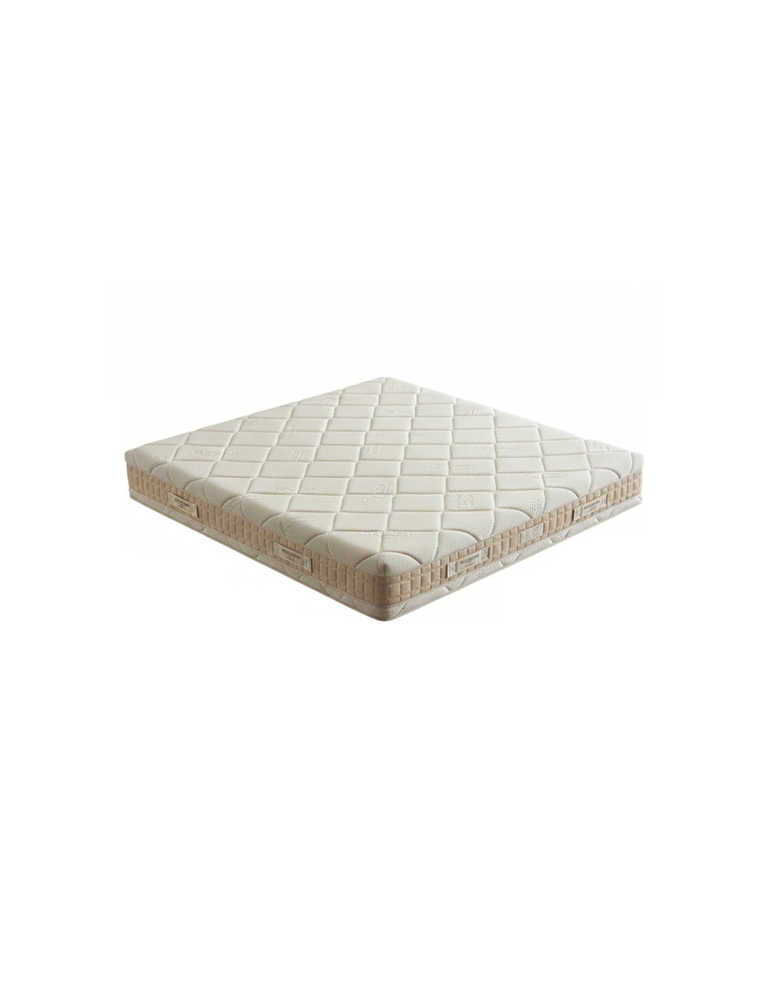 | Enveloppe | - Dessus et bas en tissu maille Tencel, douce pour la peau et respectueuse de l'environnement - Bordure en tissu jacquard beige avec poignées horizontales Air Space - Dessus rembourré en fibres 100% hypoallergéniques + 2 cm de mousse viscoélastique à mémoire de forme, ergonomique et auto-contournante - Rembourrage dessous avec 1 cm de fibres 100% hypoallergéniques |