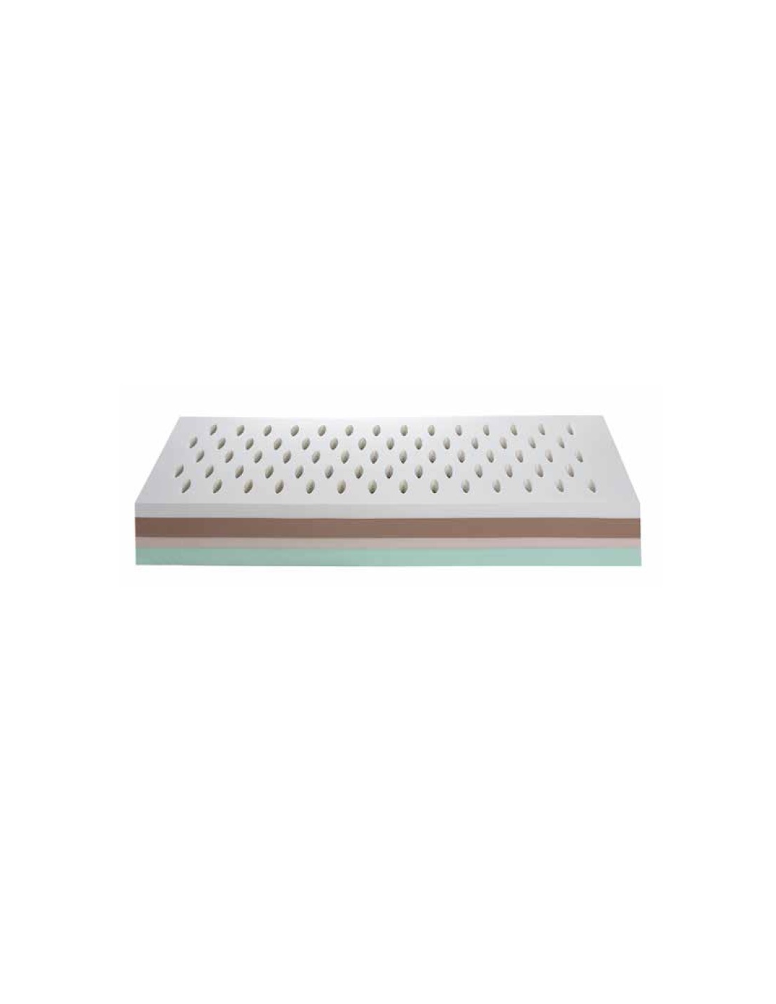 1. Couche supérieure de 4 cm en mousse viscoélastique, ergonomique, autoformante, construction aérée, haute respirabilité, résistance 1,9 KPA 2. Deuxième couche 3 cm, mousse froide sans CFC, construction aérée, haute respirabilité, résistance 2,4 KPA 3. Troisième couche 9 cm, mousse froide sans CFC, soutien, construction aérée, haute respirabilité, résistance 4,1 KPA 4. Sous-couche 7 cm, mousse froide sans CFC, soutien, construction aérée, haute respirabilité, résistance 3,9 KPA |